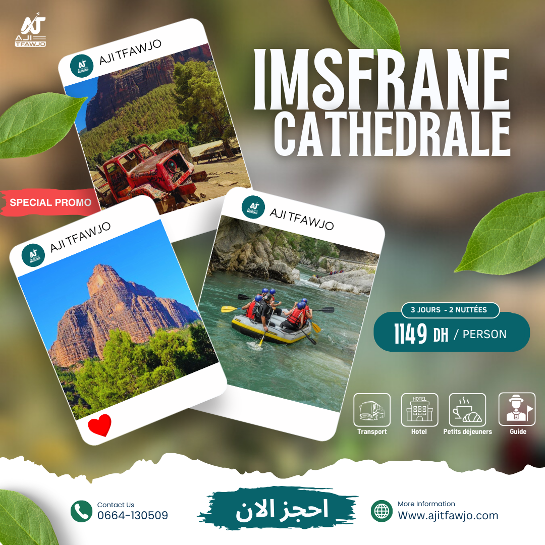 - La Cathédrale d’Imsfrane est une formation rocheuse spectaculaire offrant une vue panoramique incroyable sur l’Oued Ahnsal et les villages amazighs.